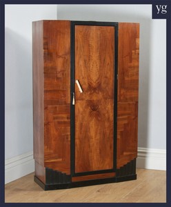 Antique English Art Deco Figured Walnut Ebony Wardrobe Armoire