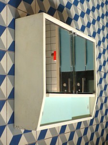 Armoire De Toilette Pharmacie Vintage Bois Peint 2 Porte Miroir