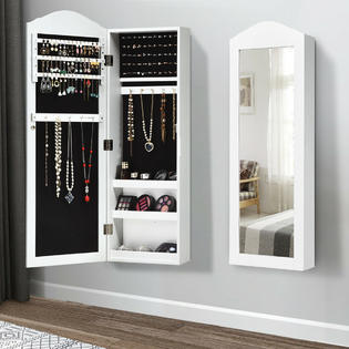 Shop 24 Lockable Storage Box Wall Mount Mirrored Jewelry Armoire